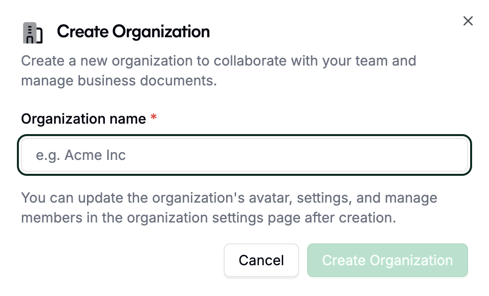 Member: Can view and manage documents, with limited access to settings (can’t change preferred currency, manage team members, or delete the organization).