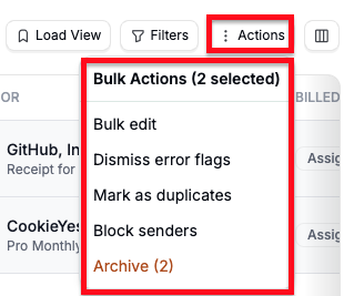 Bulk Archive: move selected documents to the archive.