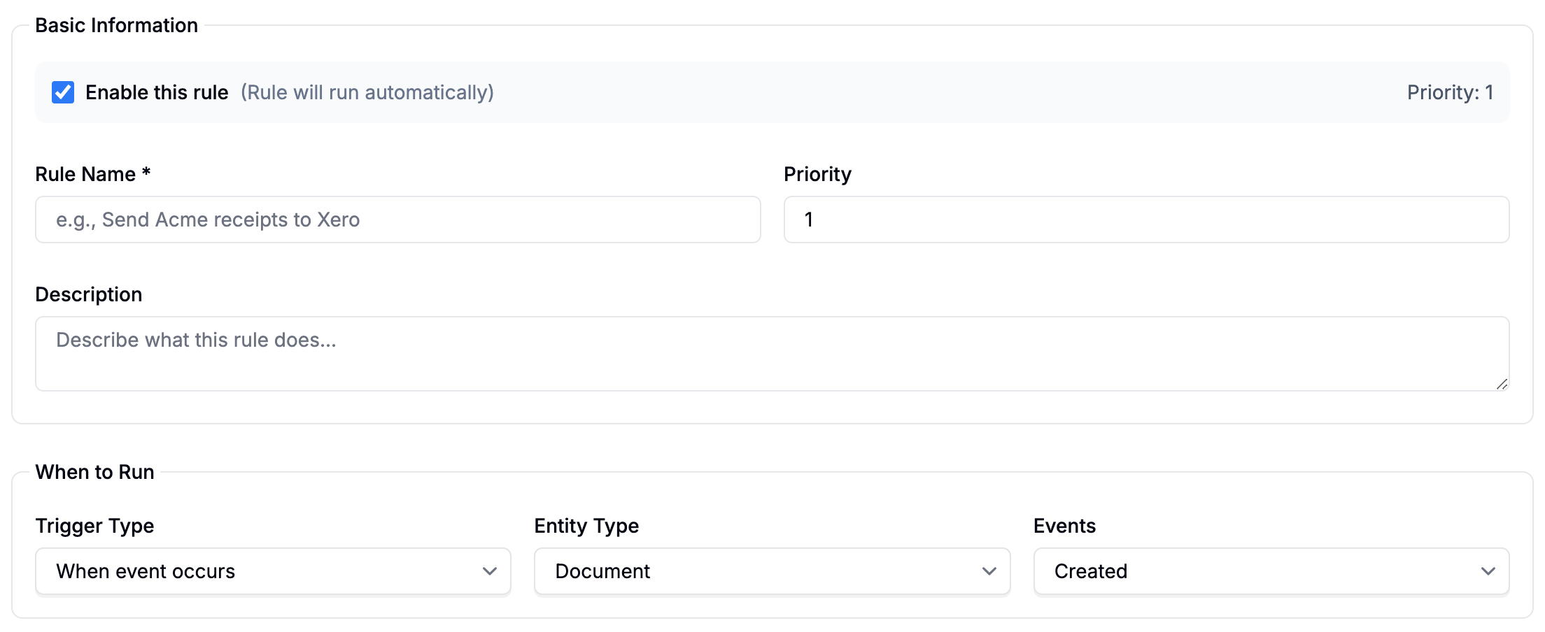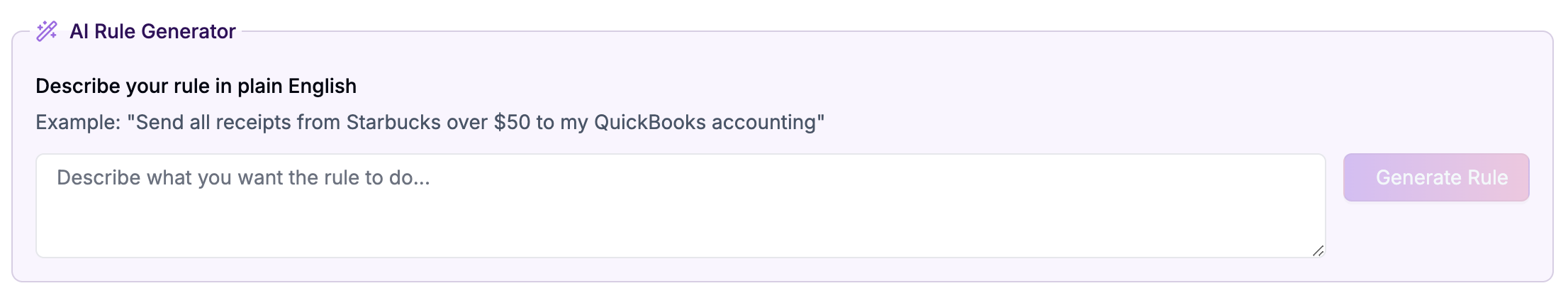 Receiptor AI allows you to create custom automations that handle repetitive bookkeeping actions for you, automatically categorizing, routing, forwarding, or syncing documents based on rules you define.