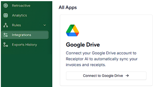 Sign in with your Google account and authorize Receiptor AI. You’ll be redirected back with a confirmation message. Make sure to set up your Google Drive structure properly.