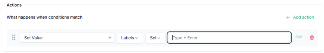 Action: select ‘Set Value → ‘Labels’ → ‘Set’ → Add your Label(s)