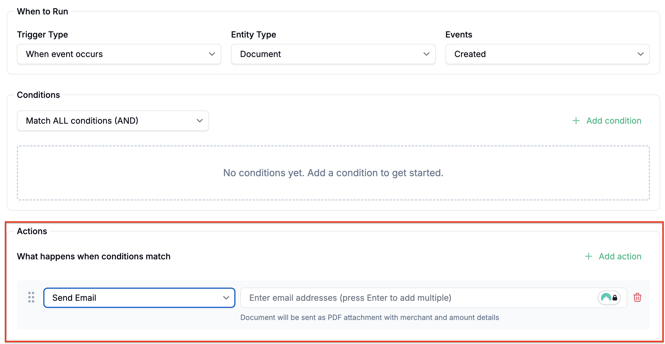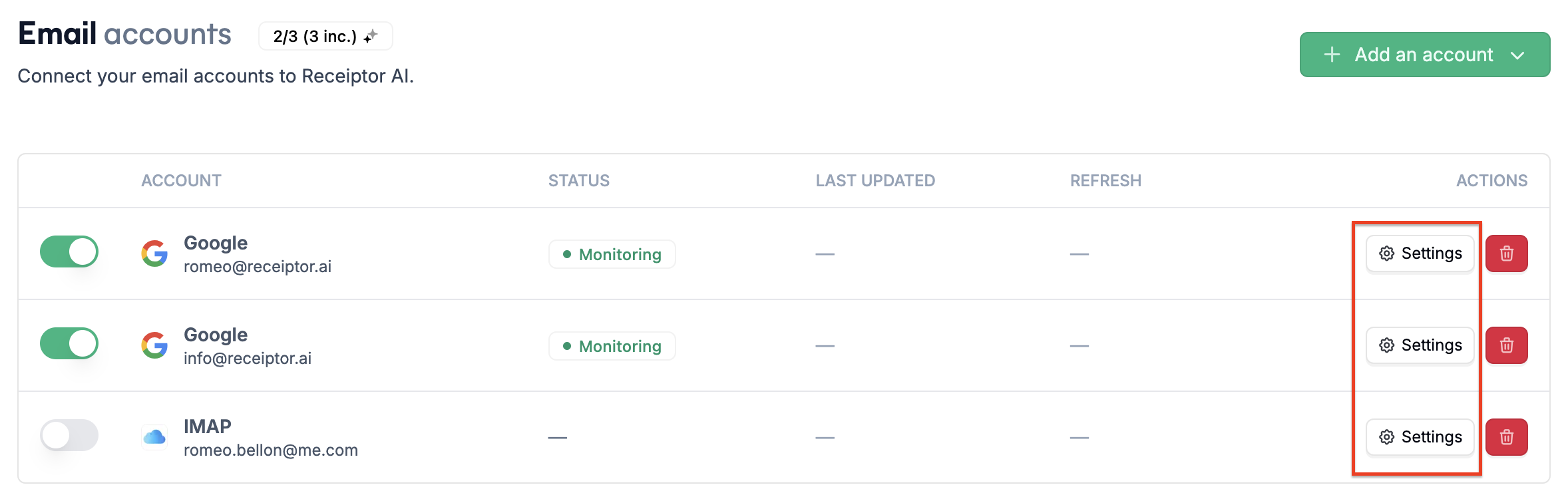 Once on the Free Trial, you can configure Receiptor AI to automatically forward extracted documents from a connected email account to a chosen destination.