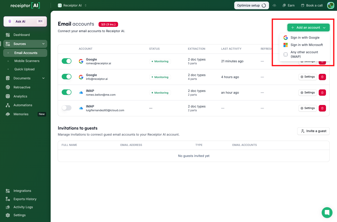 You’ve finally decided to implement an AI agent to automate your receipt and invoice workflow: collection, processing, management, and export. Here’s what you need to do right after you sign up: